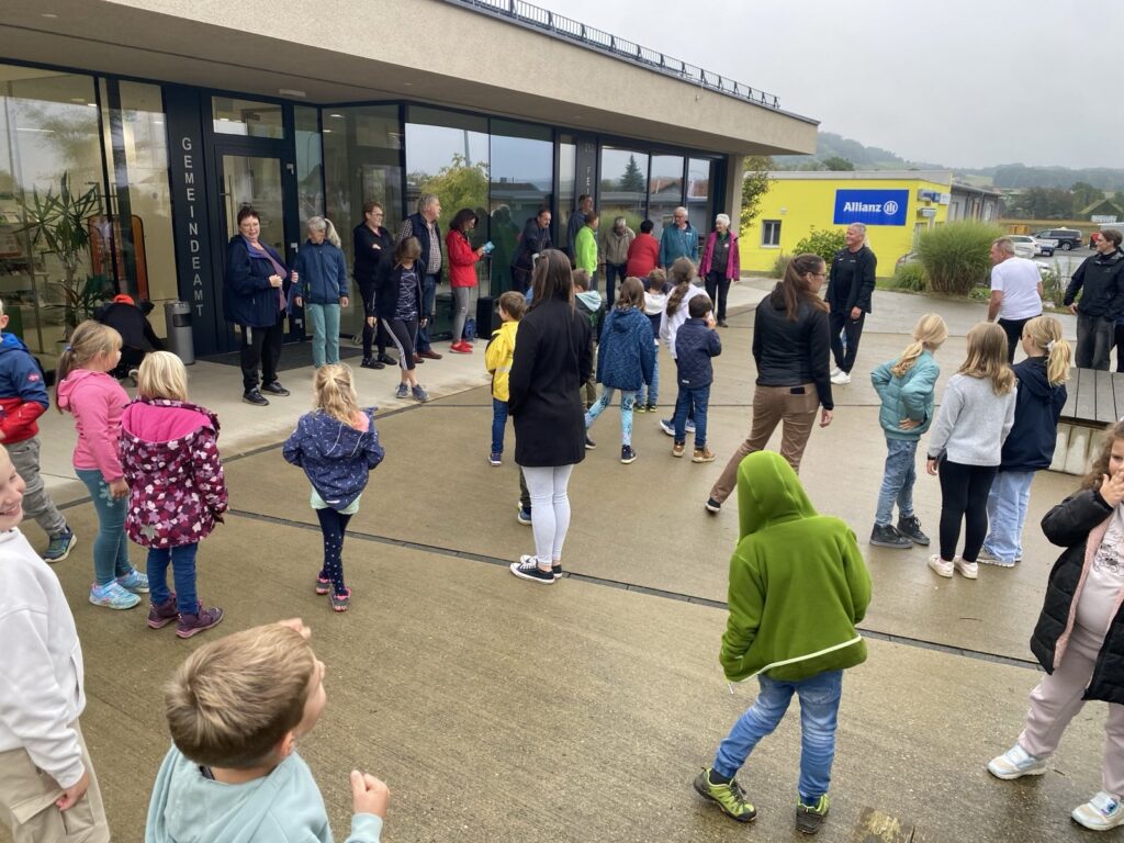 Dann fand noch eine kleine Sporteinheit vor dem Gemeindeamt auf dem Plan. Der ORF Steiermark rief dazu auf gemeinsam Sport zu machen, das ließen wir uns natürlich nicht entgehen.