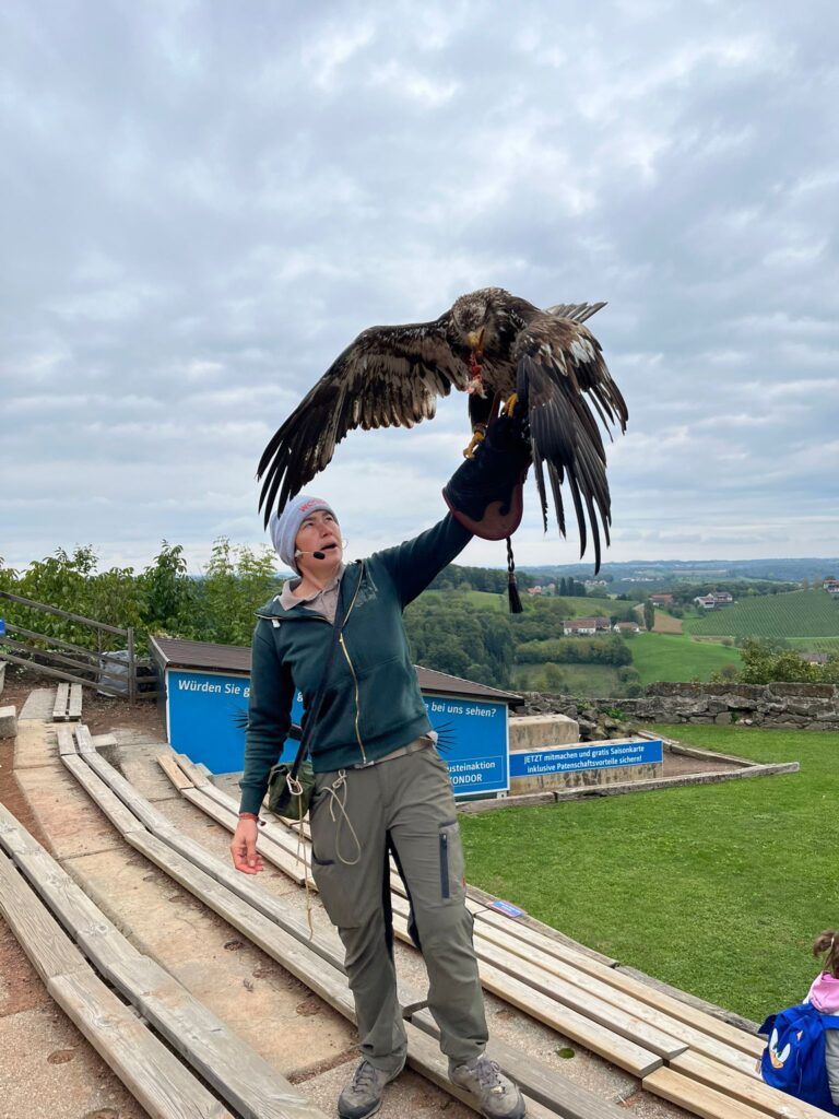 Am 30. September fand unser erster Wandertag statt. Wir fuhren mit dem Bus nach Riegersburg, von dort aus wanderten wir ein kleines Stück hinauf zur Burg. Doch wir besichtigten an diesem Tag nicht die Burg, sonderen durften die Greifvogelshow erleben. Wir hatten riesen Glück mit dem Wetter, gerade als wir wieder zum Bus zurückkehrten, begann es zu Regnen. Trotz allem war es ein sehr toller Tag.