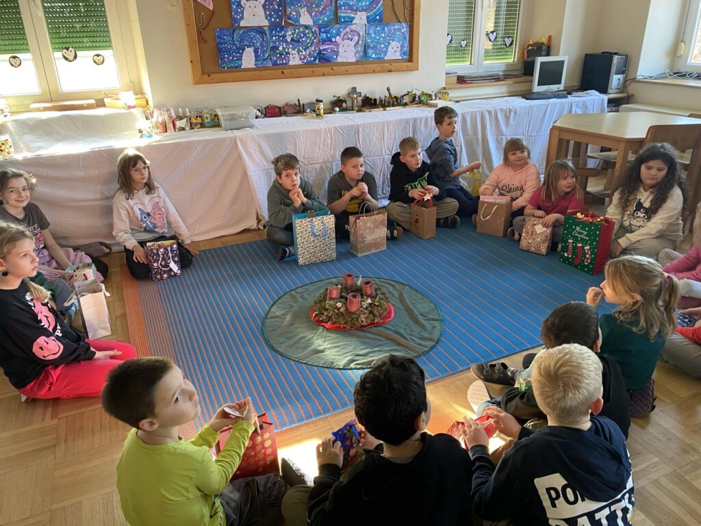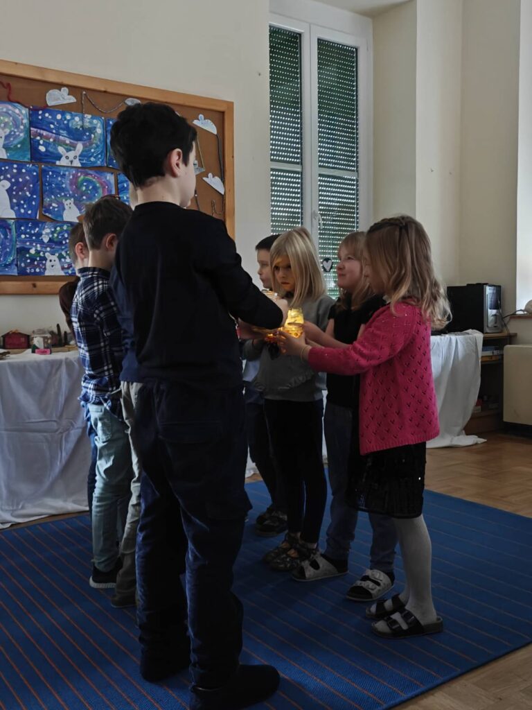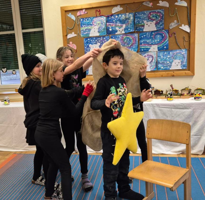 Am 23.12. feierten wir gemeinsam mit zahlreichen Familienmitgliedern unser Adventfest. Die Kinder haben dafür Lieder, ein Theaterstück – Der entführte Weihnachtsstern sowie einen Lichtertanz vorbereitet. Anschließend klang der Vormittag mit Kaffee, Tee & Keksen aus.